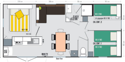 – Bedroom 3: 1 single bed (80 x 190 cm) + 1 pull-out bed (80 x 180 cm)