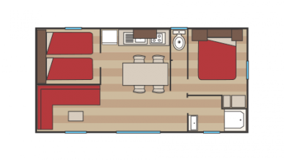 – 1 bedroom with 2 single beds (80 x 190 cm).