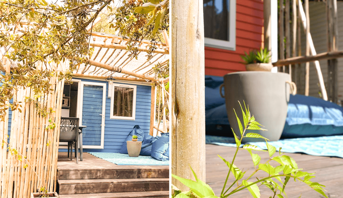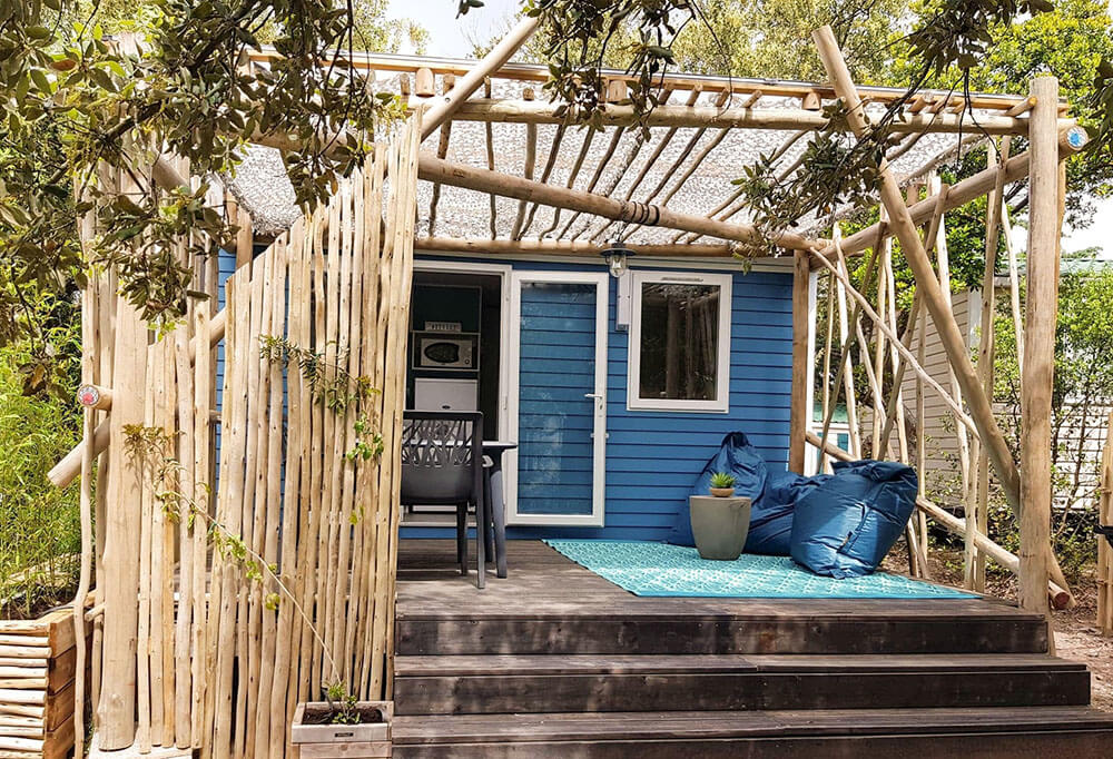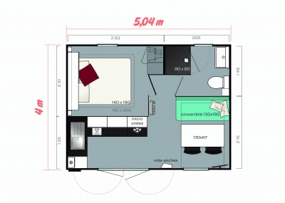 – 1 bedroom with double bed (160 x 200 cm). – Dining area with convertible sofa. Bathroom. WC. – Fridge freezer. – Contemporary covered wooden terrace.. 2 garden chairs. – TV, Air-con.